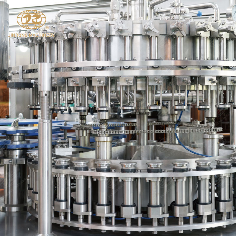 三合一含汽飲料灌裝機(jī)集清洗、灌裝、旋蓋于一體的灌裝設(shè)備,成套飲料生產(chǎn)線適合汽水、可樂(lè)、蘇打水、氣泡水等。玻璃瓶含汽飲料灌裝機(jī)組內(nèi)部一次完成洗瓶、灌裝、封蓋三道工序,瓶子磨損小、傳動(dòng)準(zhǔn)確平穩(wěn)、瓶型更換便捷。